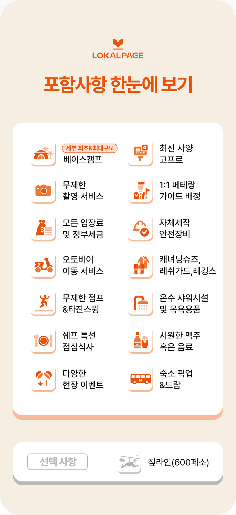 1인 예약금 36,000원 + 현장지불금 4,000페소